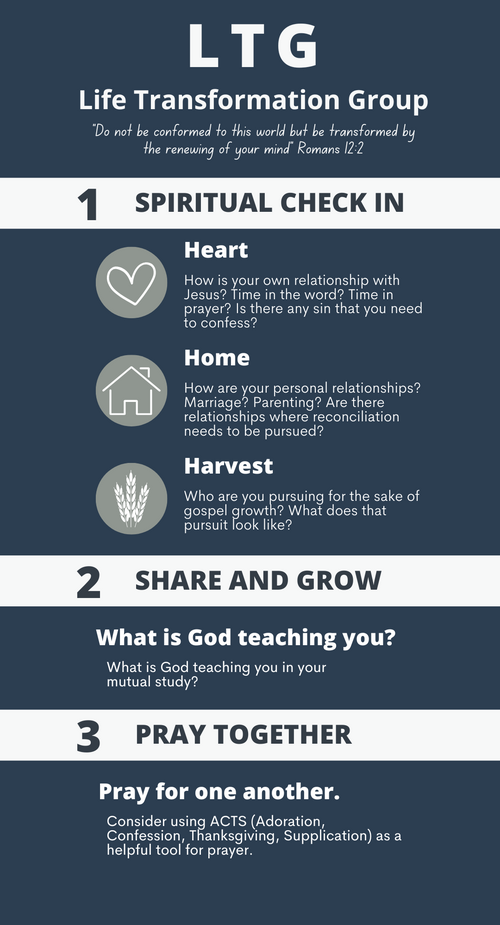 To cultivate gospel centered relationships, where individuals (2-6 people) consistently meet to confess sin, practice repentance, share what God is teaching them, and pray for one another, as we grow in following the person and way of Jesus.
