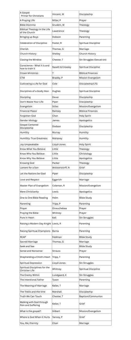 The Word of God is a deep deep well. We would encourage every LTG to consider reading, rereading, and studying God's living and active word. It is through His word, by His Spirit, in the context of His people that we can experience greater and greater transformation. We also acknowledge that other secondary resources, paired with an individual's investment in the Word, can aid in growth and transformation. Please see a list of helpful resources below, that have blessed us as pastors.